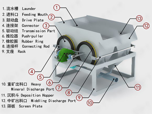 大顆粒跳汰機(jī)也被成為AM-30跳汰機(jī),入選粒度可達(dá)30毫米,具有上、下同時(shí)排料,連續(xù)工作的選礦條件,是目前成功應(yīng)用較為廣泛的跳汰選礦之一。大顆粒跳汰機(jī)是由馬鞍山礦院設(shè)計(jì)研發(fā)的,昆重礦機(jī)批量生產(chǎn),最初設(shè)計(jì)主要用于處理赤鐵礦,現(xiàn)已發(fā)展應(yīng)用到赤鐵礦,褐鐵礦,鏡鐵礦,錳礦,重晶石,螢石,天青石,汞礦,銻礦等礦物選礦,選礦效果良好,獲得眾多客戶的一致認(rèn)可和好評。